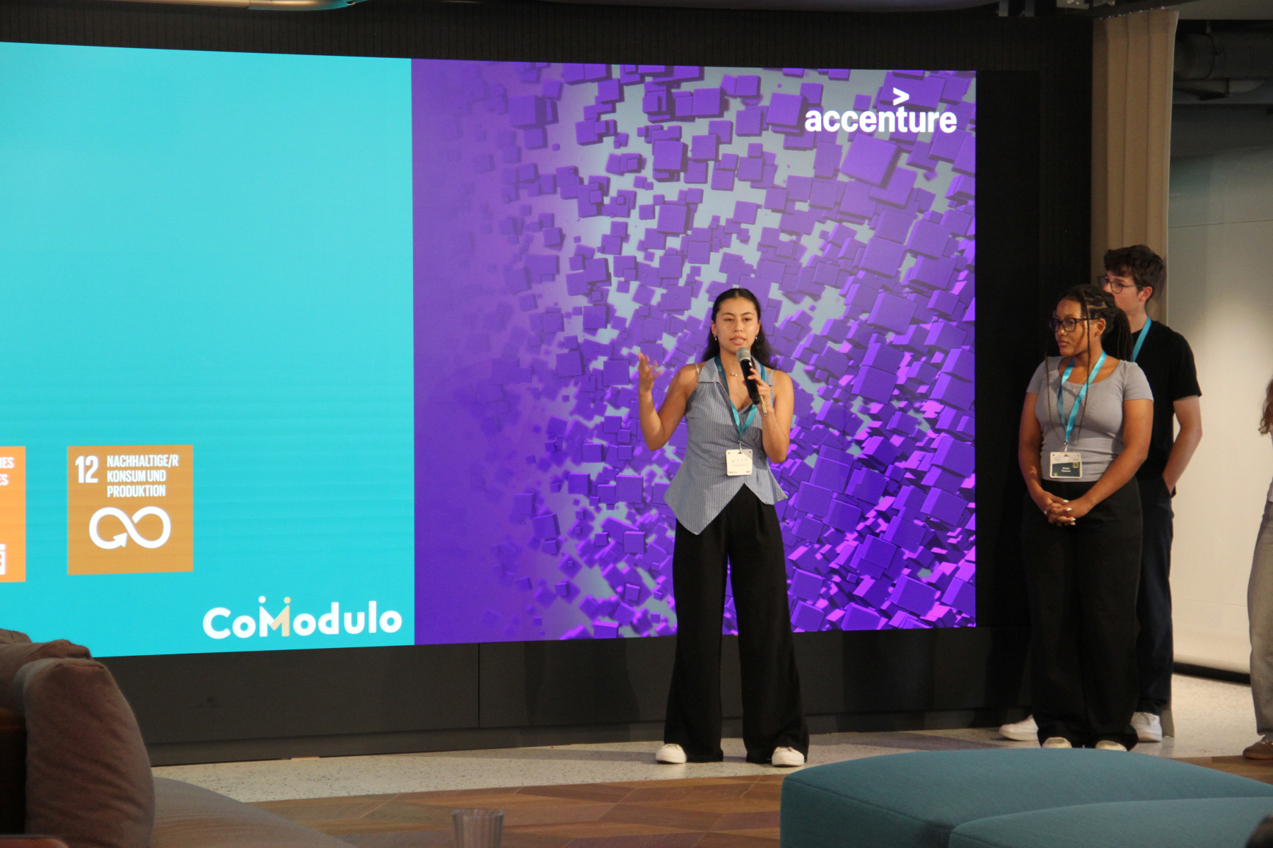 The participants had the chance to listen to two interesting Inputs by Tischlein Deck Dich and Dr. Angelika Schmid before starting the challenge. After a morning of intense teamwork, the participants presented their concepts to an audience and a panel of judges. GrüezAI stood out with their idea of bringing together generations with different backgrounds to form convenient living situations, winning the prize and earning an exclusive coaching session with Accenture. The other teams also demonstrated considerable creativity and commitment, highlighting the wide range of ideas and the potential of young talent for sustainable innovation.