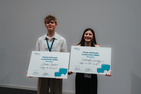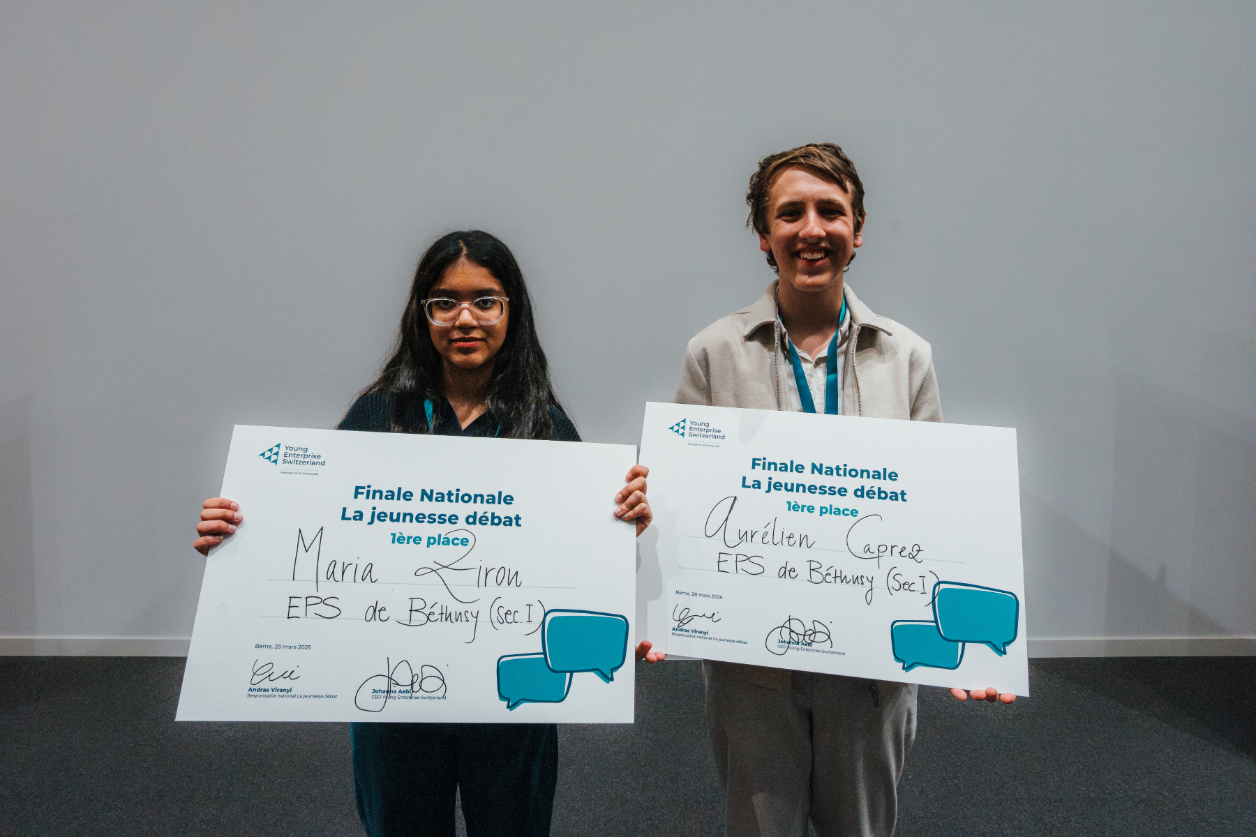 Zusätzlich wurden Jade Murisier (Écoles de Corsier-sur-Vevey), Joana Pereira (Gymnasium Bäumlihof) und Hannah Pauly (EPS de l’Elysée) mit dem Stiftung Wegweiser Ethics Award ausgezeichnet. Dieser Preis würdigt eine besonders reflektierte und differenzierte Auseinandersetzung mit den eigenen Werten im Zusammenhang mit einem Debattenthema und hebt damit eine zentrale Dimension des Debattierens hervor, die über reine Argumentationsstärke hinausgeht.