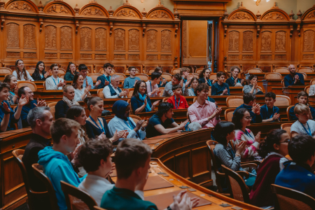 Die Jugendlichen argumentierten nicht nur mit erstaunlichem Fachwissen, sondern überzeugten mit ihrer Auftrittskompetenz und ihrem respektvollen Umgang mit den Mitdebattierenden. Ein Höhepunkt war der Bundeshausbesuch, wo die Schülerinnen und Schüler ihre brennenden Fragen an den Nationalrätinnen und Nationalräten Damien Cottier, Sarah Wyss, Marc Jost, Valérie Piller Carrard und Gerhard Andrey stellen konnten.