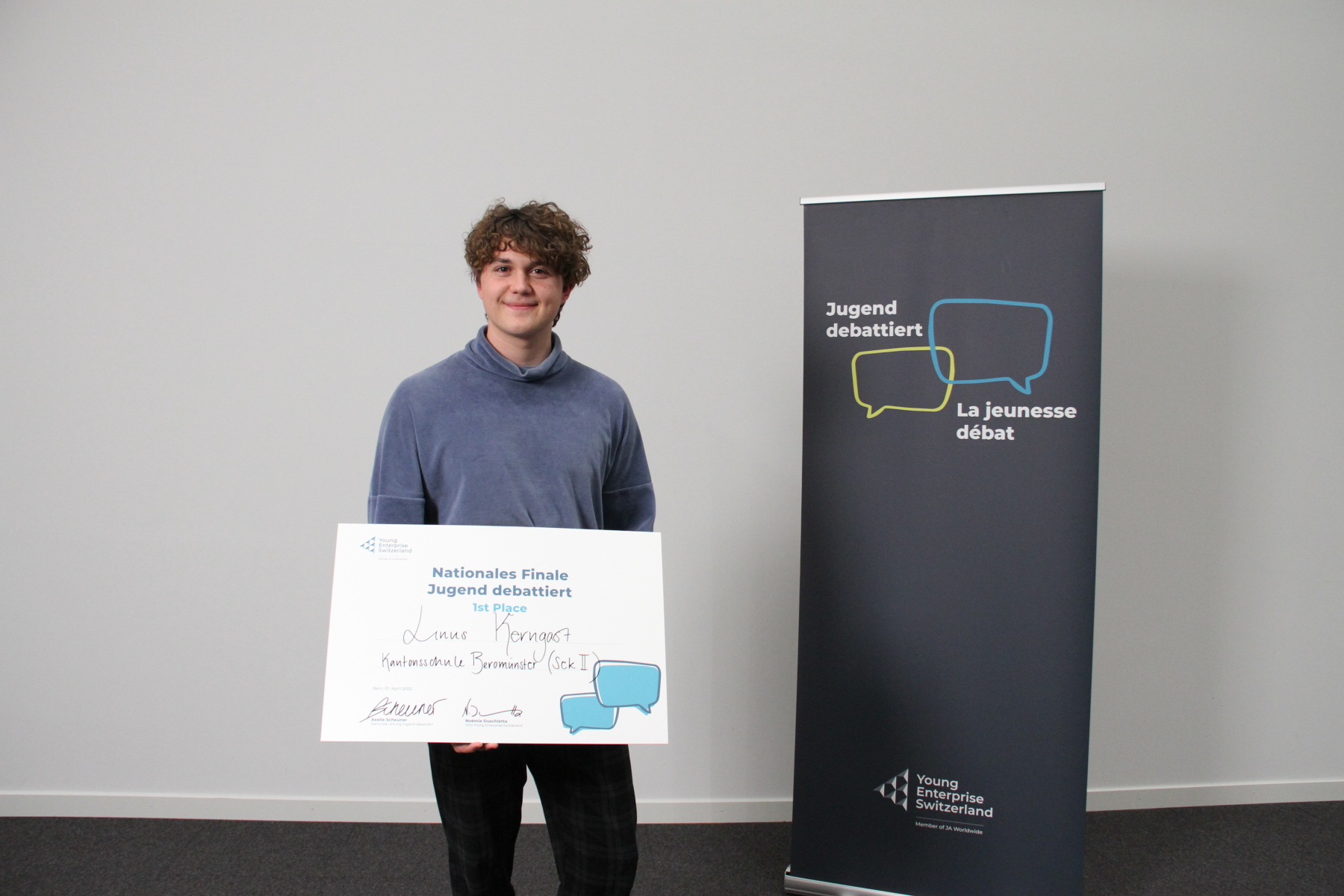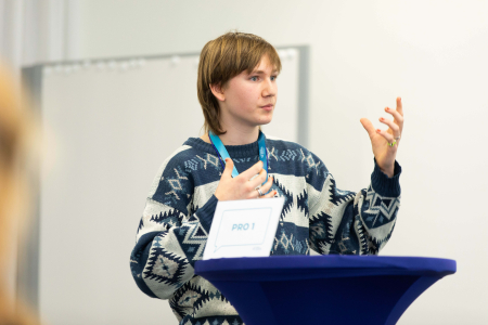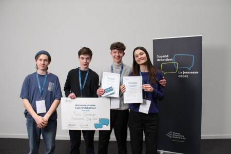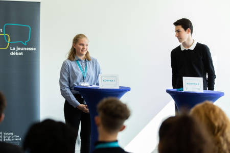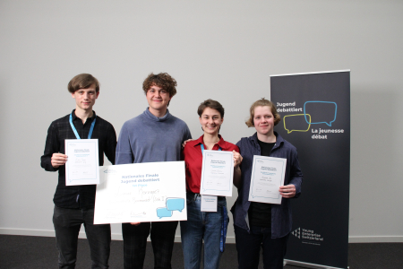 Dieses Wochenende fand das Nationale Finale von Jugend debattiert in der Mobiliar in Bern statt. Die besten 60 Debattierenden der Schweiz kamen zusammen und debattierten in ihrer jeweiligen Alterskategorie sowie in der eigenen Landessprache - Französisch oder Deutsch. Ganz nach der Methode von Jugend debattiert hörten sich die Jugendlichen aufmerksam zu und brachten nachvollziehbare Argumente. Die Jugendlichen debattierten intensiv über Themen wie das Verbot der freien Arztwahl, die Verlegung des Schulunterrichts im/ins Metaverse zu Krisenzeiten oder das Verbot der Veröffentlichung von Inhalt auf Social Media unter 16 Jahren – und das alles unabhängig von der eigenen Meinung.