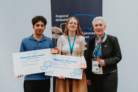 Im Rahmen von Jugend debattiert setzen die Jugendlichen ihre Argumentationsfähigkeiten aus einer zugelosten Perspektive in Debatten ein. Der Wegweiser Ethics Award geht aber noch einen Schritt weiter: Nach der Debatte reflektieren die Teilnehmenden ihr Thema aus einer ethischen Sicht.